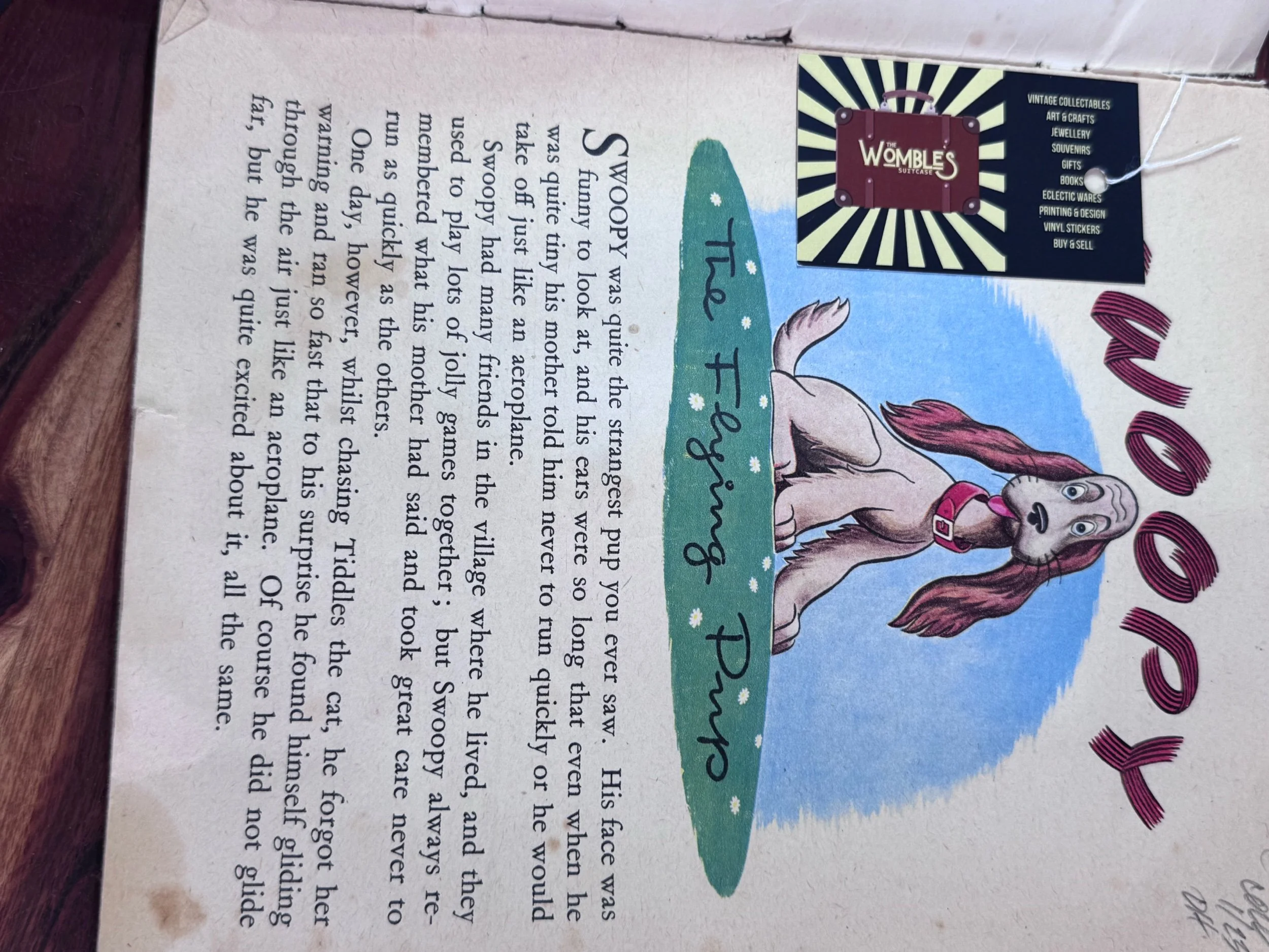 $10 Flat rate shipping with in Australia or free pick up from our store. › Swoopy the flying dog vintage book Image 1 of 4 Image 2 of 4 Image 3 of 4 Image 4 of 4 Swoopy the flying dog vintage book $18.00 Old book magazine in decent condition Some wear and rips Add To Cart Added! Old book magazine in decent condition Some wear and rips