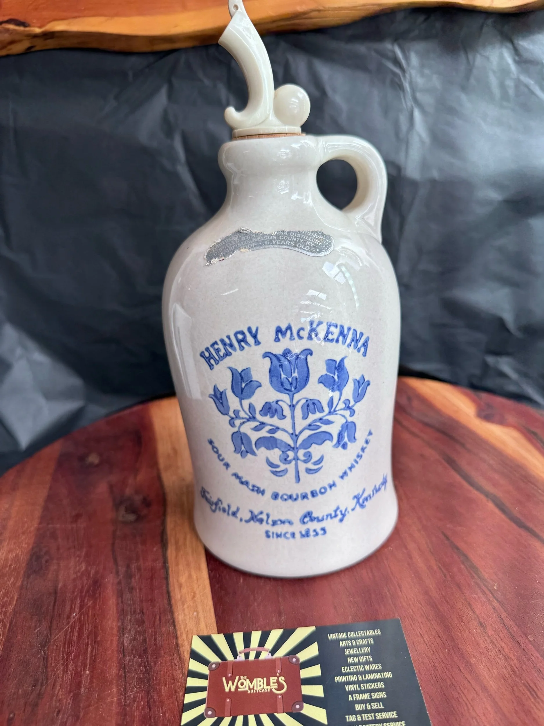 $10 Flat rate shipping with in Australia or free pick up from our store. › Vintage white and blue Henry McKenna whisky jug Image 1 of 5 Image 2 of 5 Image 3 of 5 Image 4 of 5 Image 5 of 5 Vintage white and blue Henry McKenna whisky jug $35.00 Lovely itemNo flaws or breaks Lid with cork Add To Cart Added! Lovely itemNo flaws or breaks Lid with cork