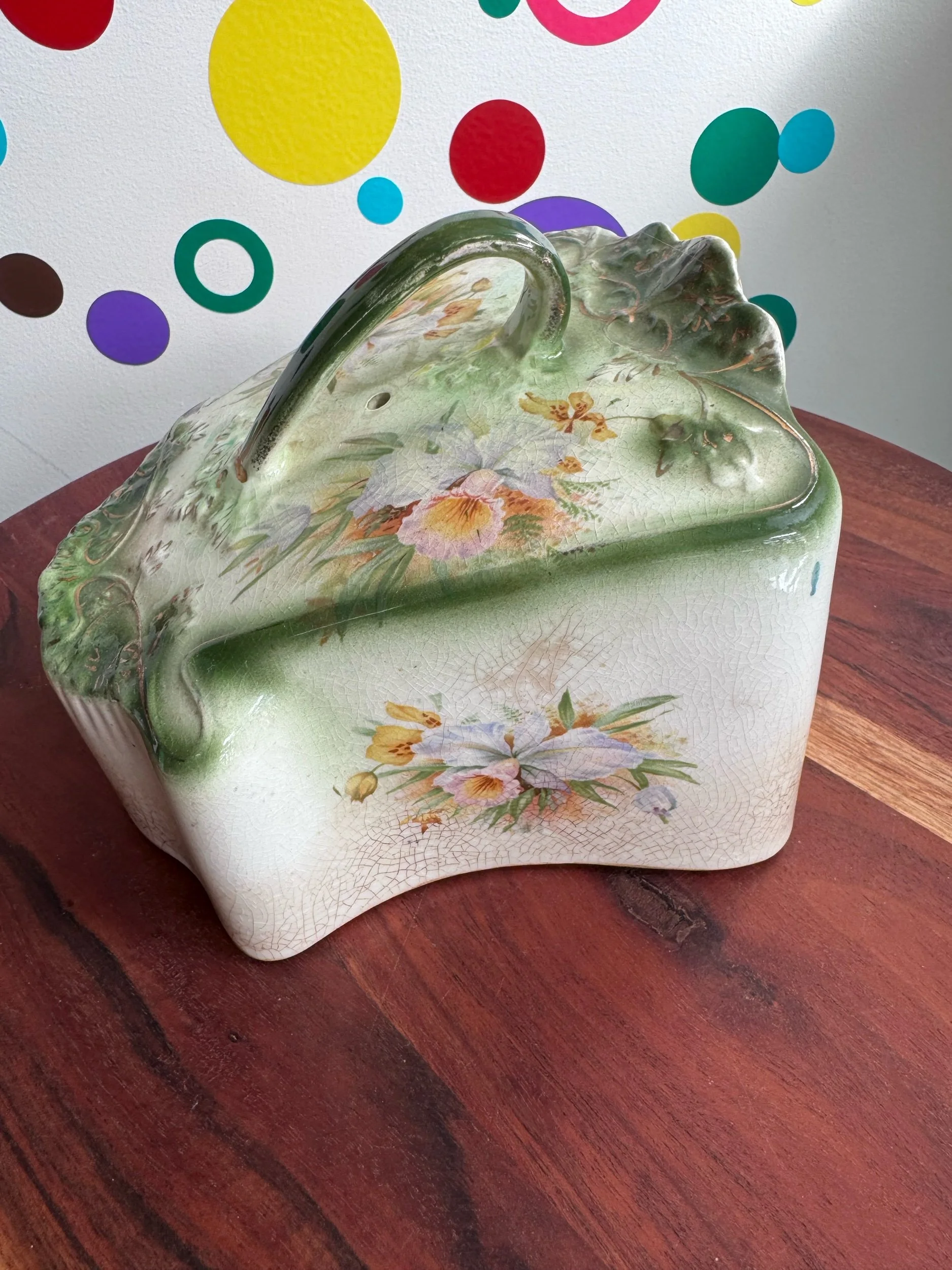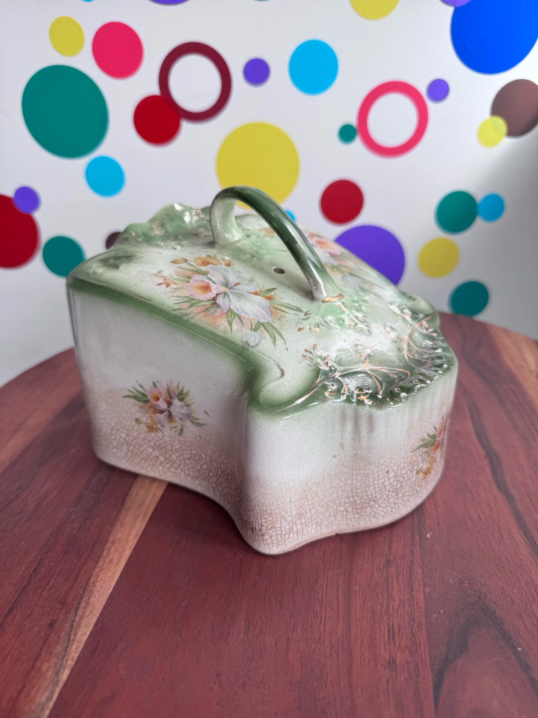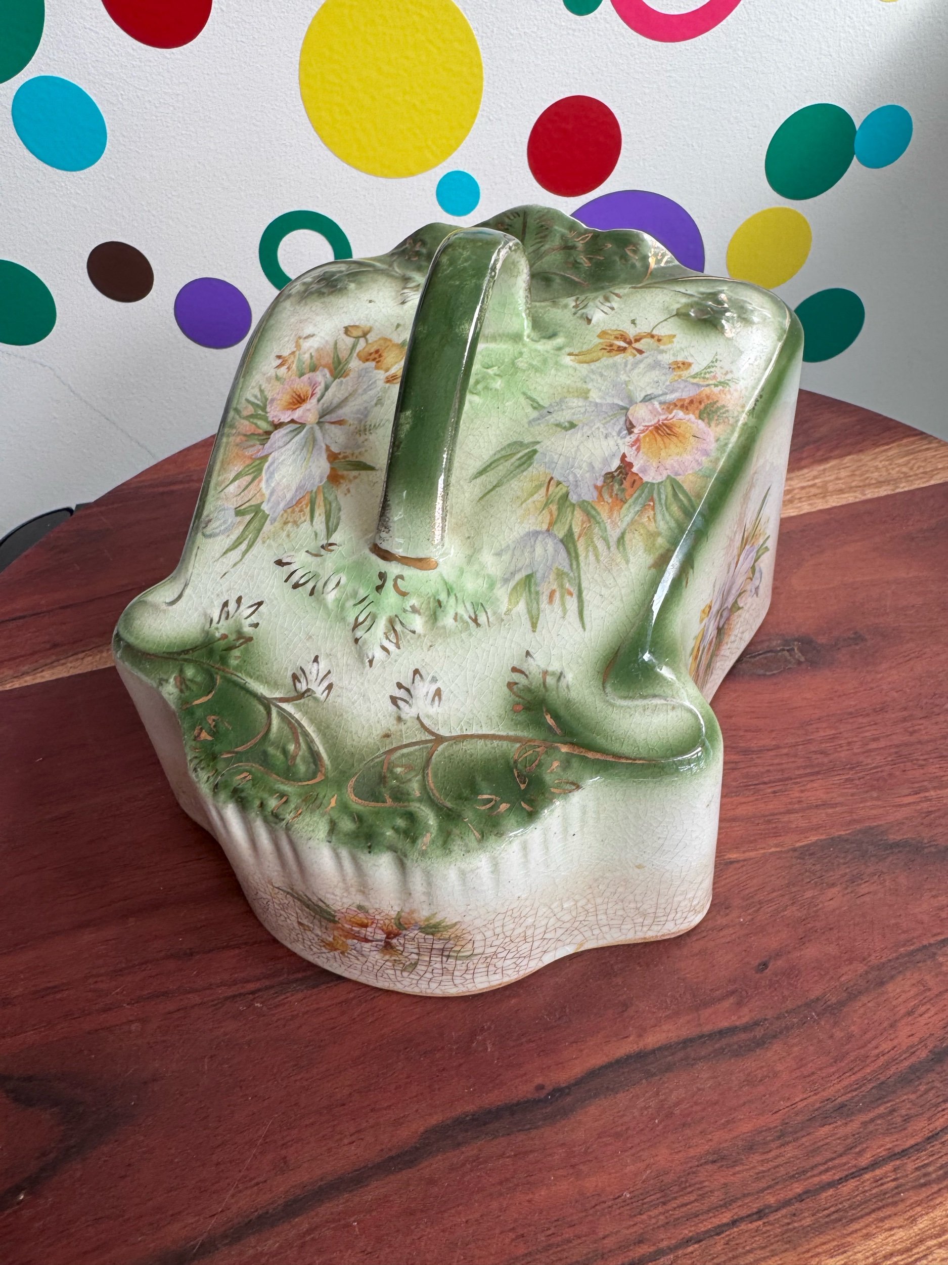 Green flower floral print with gold trim